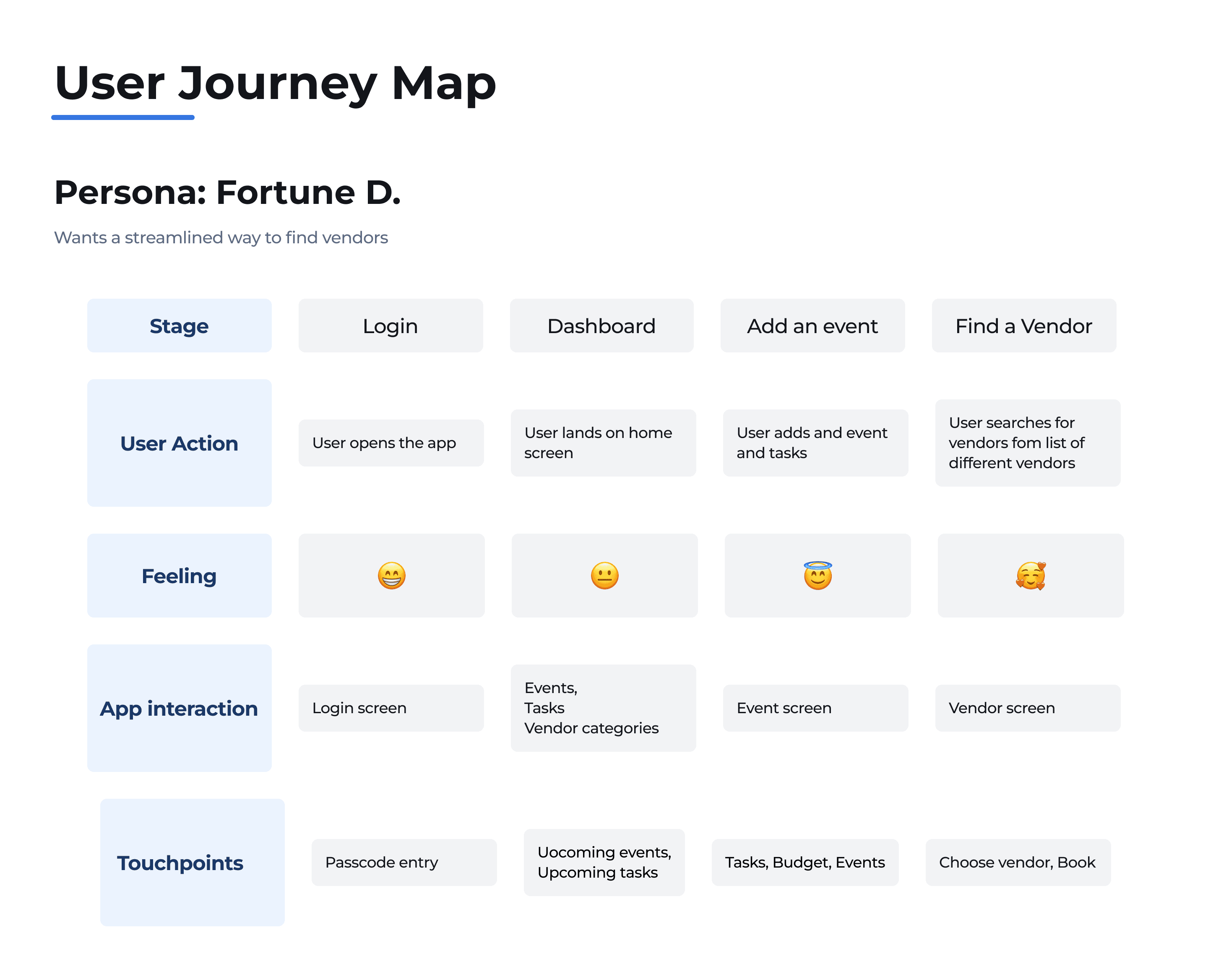 Planning events can feel overwhelming, from finding and coordinating vendors to managing timelines and budgets. This project stemmed from a personal desire to make the experience organized, intuitive, and collaborative. I designed this app to simplify the journey from planning to execution, making it accessible for both personal and professional events no matter how busy.